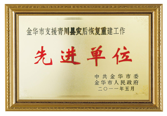 金華市支援青川縣災(zāi)后重建工作先進單位